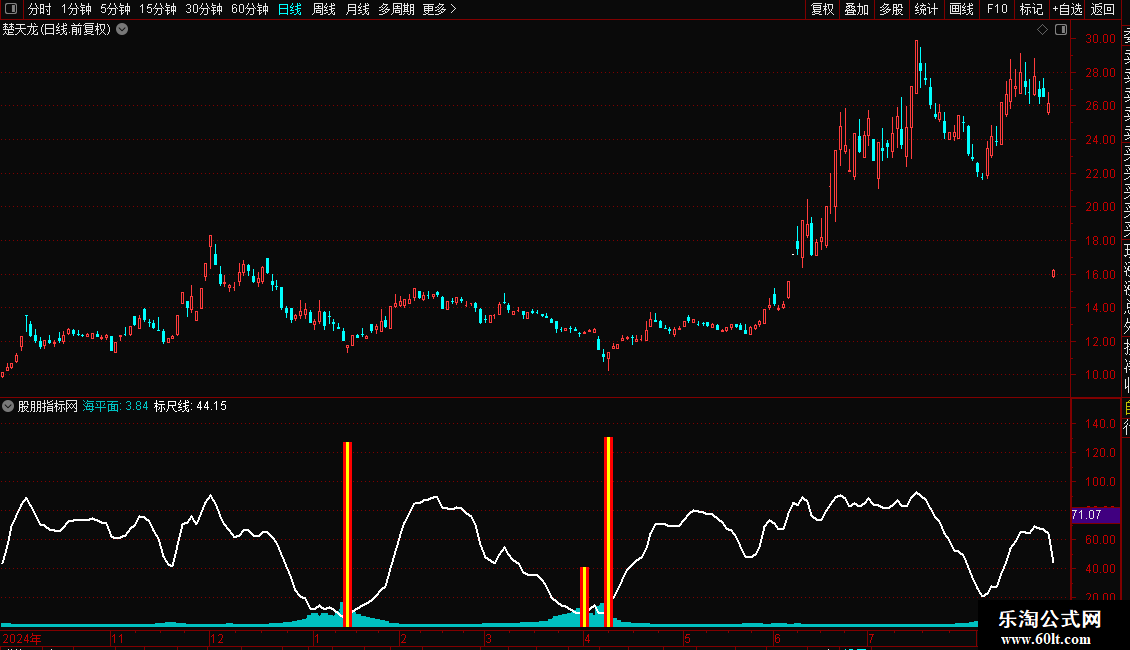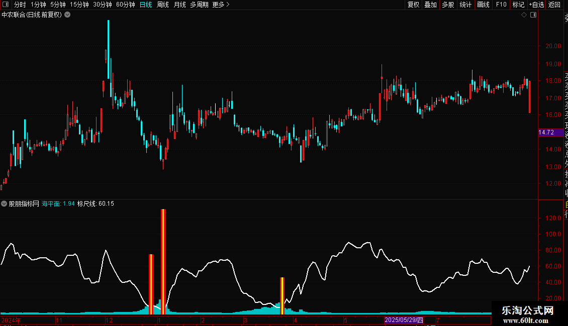 这款指标主要用于捕捉主力资金介入的起涨点。它通过两条线(海平面与标尺线)的动态关系,配合底部红柱(航标灯)的出现,来判断市场趋势的转折。指标试图在股价处于相对低位且即将反转时发出强烈的买入信号,同时利用黄色柱体辅助确认趋势的延续性。