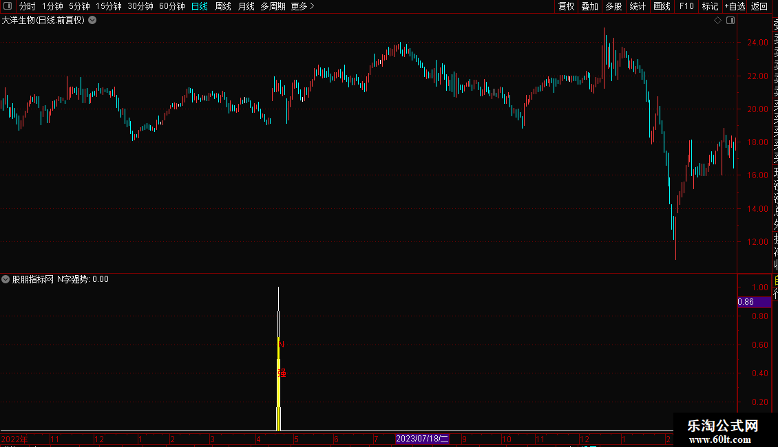 功能:指标的核心是识别“N字强势”信号。它通过寻找前期出现过涨停的强势股,在其股价回调至关键支撑位(如20日均线)附近,且成交量萎缩后,再次出现涨停或大阳线时,发出“N强”提示。