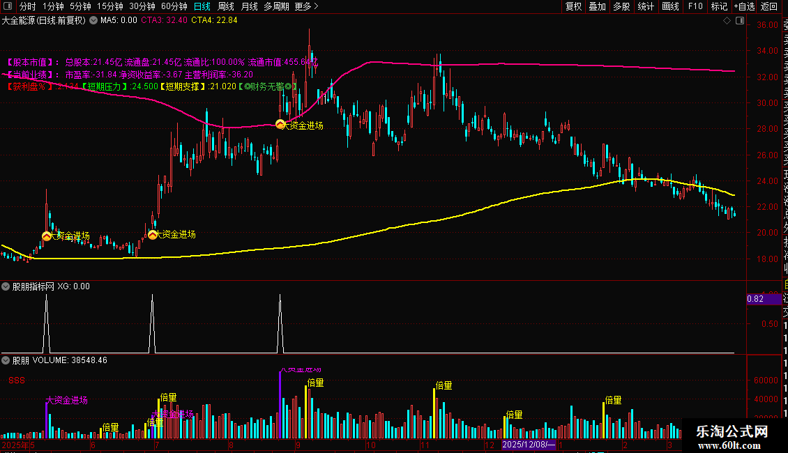 DRAWTEXT(XG, L*0.98, ' 大资金进场'),COLORYELLOW;