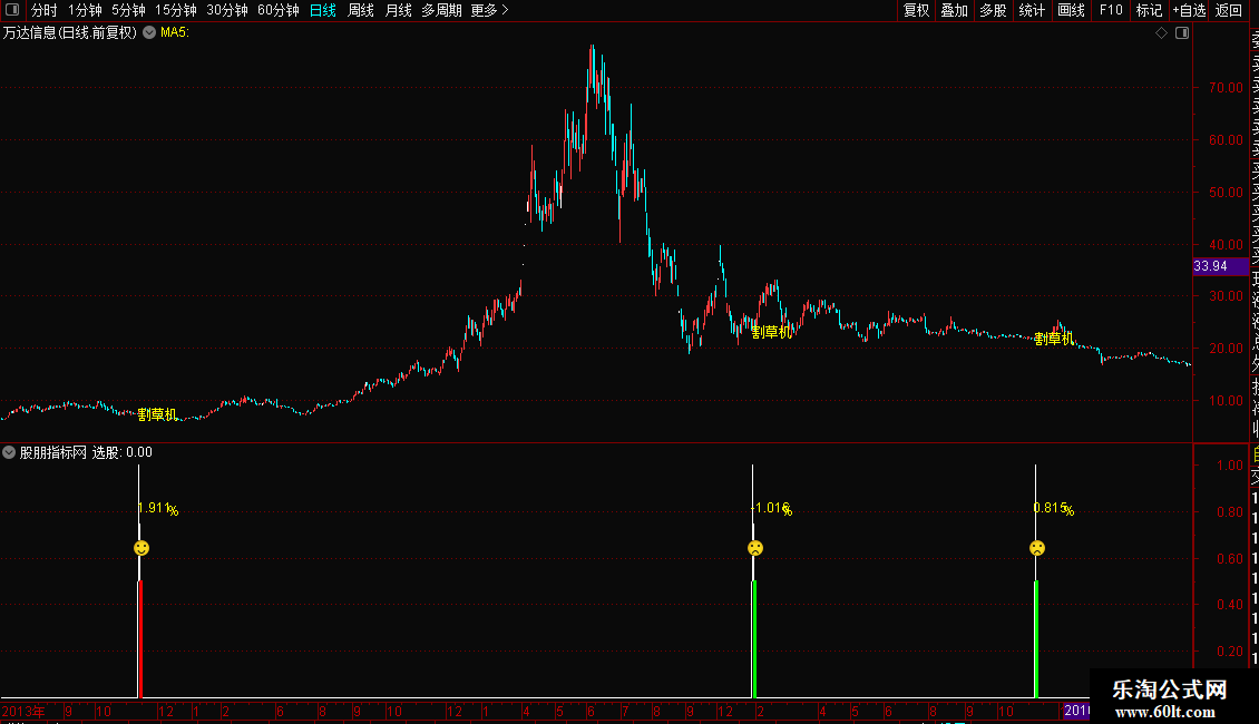 这款通达信尾盘割草机属于实用型主副图搭配指标,也是针对性极强的尾盘公式,核心优势在于发出信号后,能帮助股民在尾盘相对低位及时介入,信号出现精准度高,属于实战性较强的精品股票指标,不管是电脑版通达信还是手机版通达信,都能正常安装使用,适配全场景看盘需求。