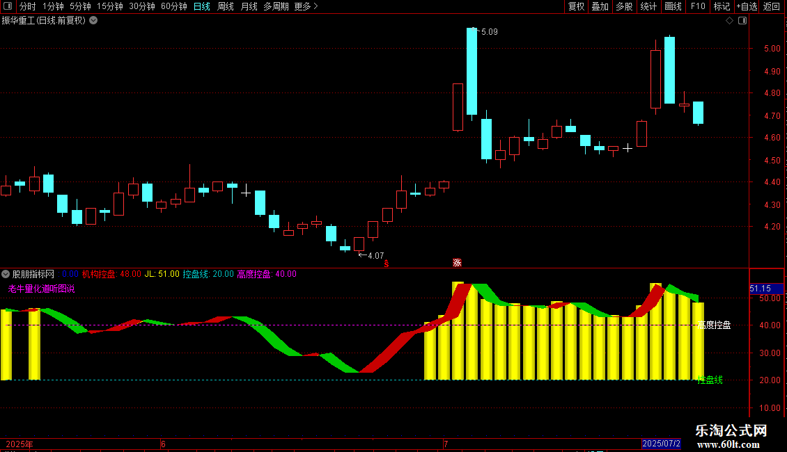 5. 设定控盘线(20)和高度控盘线(40)作为参考阈值。
