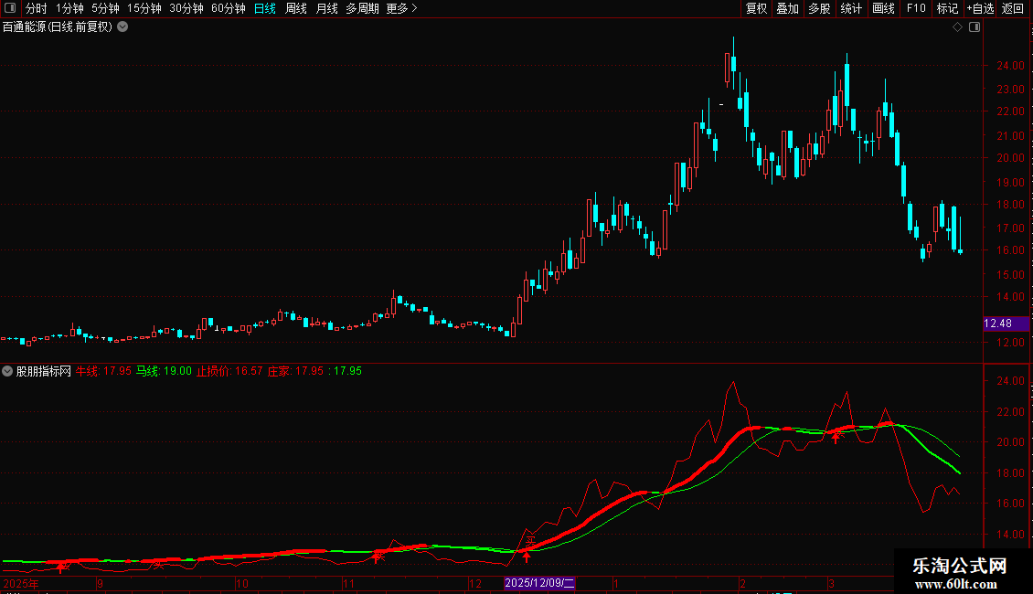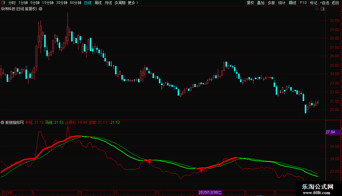 观察“牛线”与“马线”的金叉(牛线上穿马线)作为买入信号参考。同时,可结合“庄家线”的颜色与粗细变化来辅助判断趋势强度。图表上标注的“止损价”可作为风险控制的价位参考。