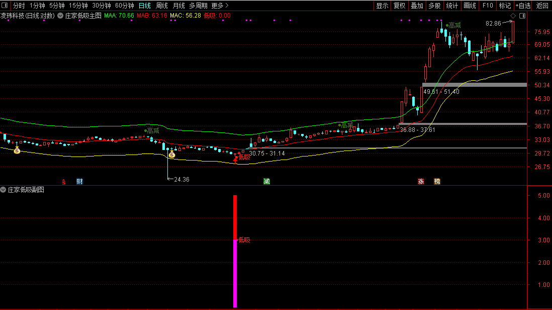 当图表上出现“●低吸”或“大底”图标时,可视为潜在的买入机会,投资者可结合其他因素择机介入。当出现“●高减”信号时,则提示短期可能面临回调,可考虑减仓。折磨人的行情,低吸是一种很好的方式,仅供参考!