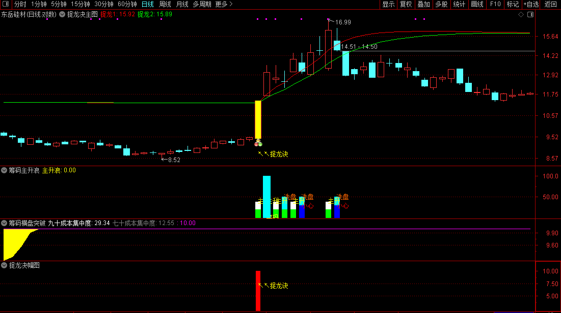 捉龙决共振包括1主3副2选股。用法是设置为预警公式,盘中有信号自动弹出!