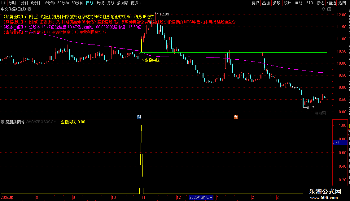 DRAWTEXT_FIX(ISLASTBAR,0.005,0.12,0,股本市值),COLORMAGENTA;
