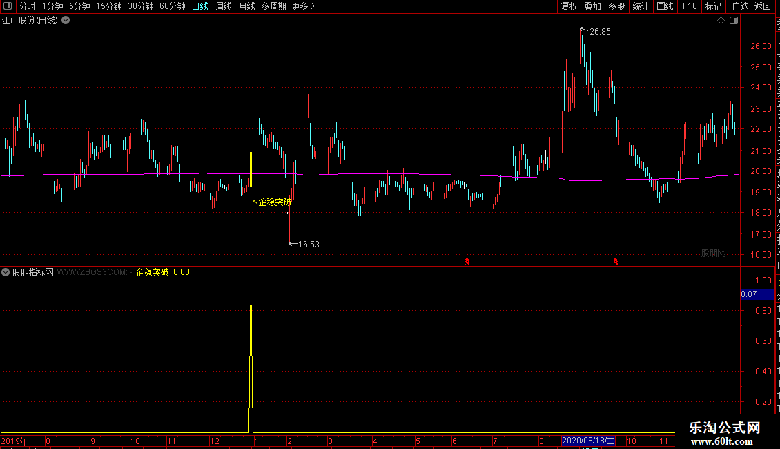 自定义技术指标,主要用于在K线图上显示股票的综合信息和交易信号。