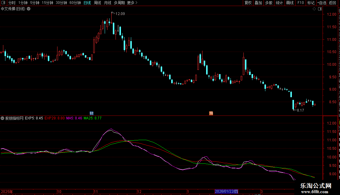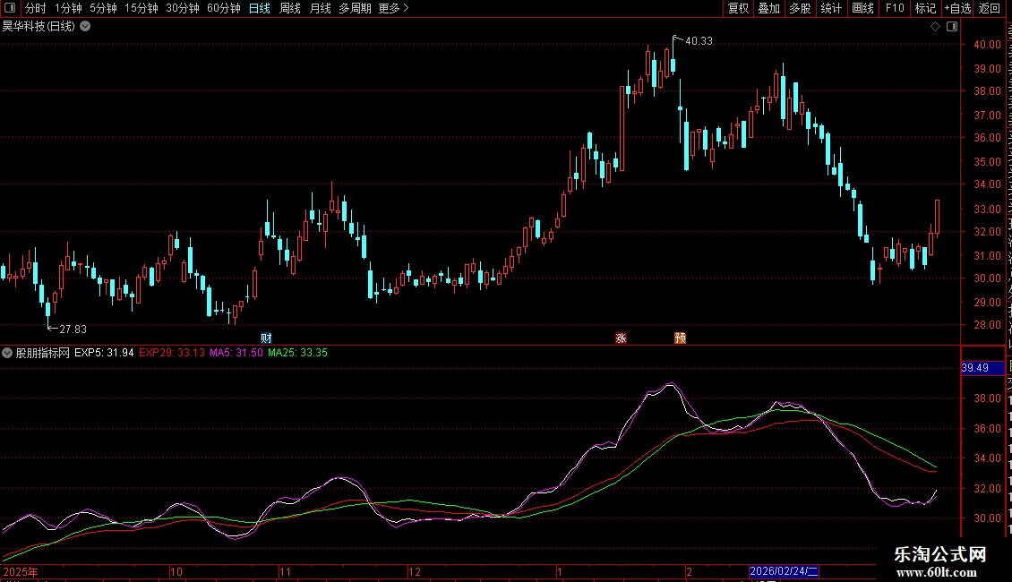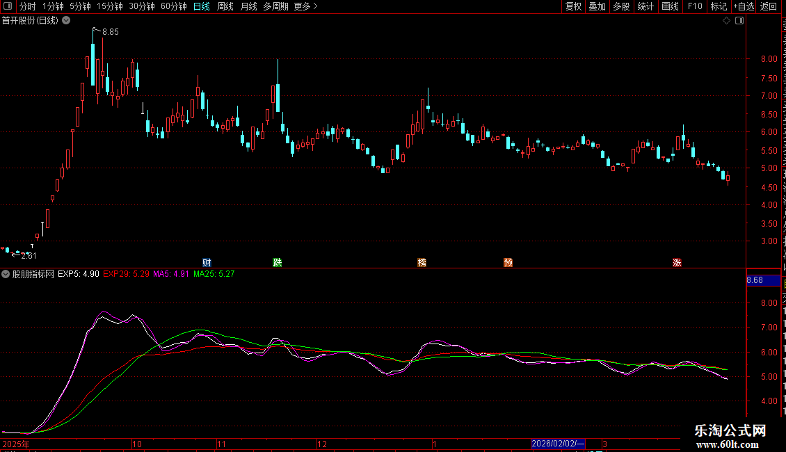 4. 均线系统:叠加了5日、25日简单移动平均线(MA)以及5日、29日指数移动平均线(EXPMA),用于判断趋势和支撑压力。