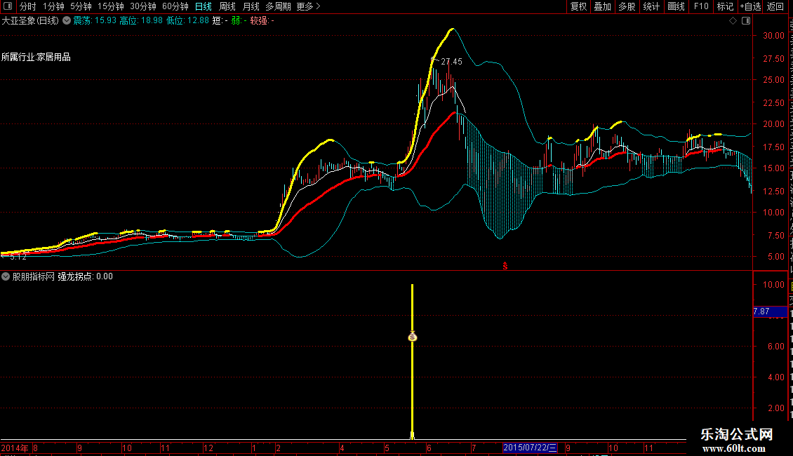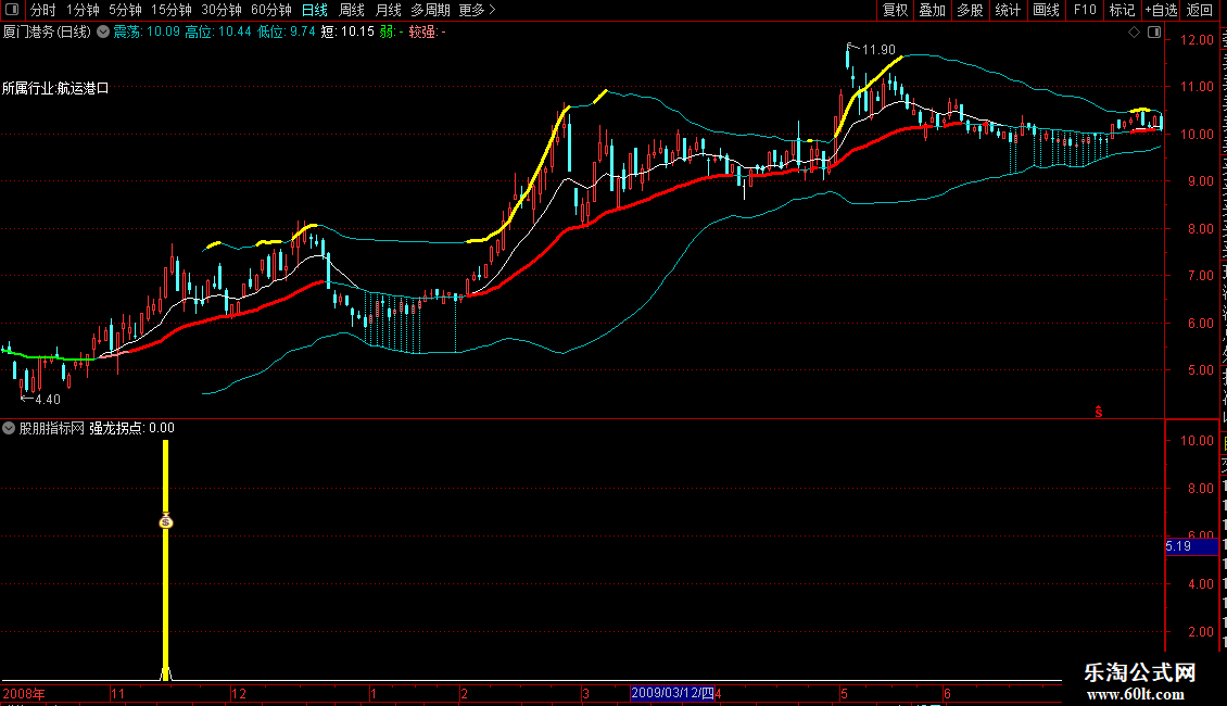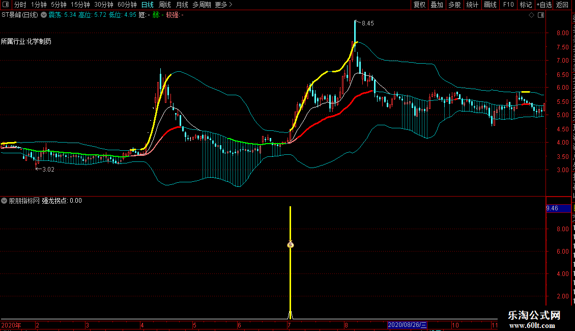 2. 副图:出现黄色柱+图标信号,为强龙拐点买入提示;
