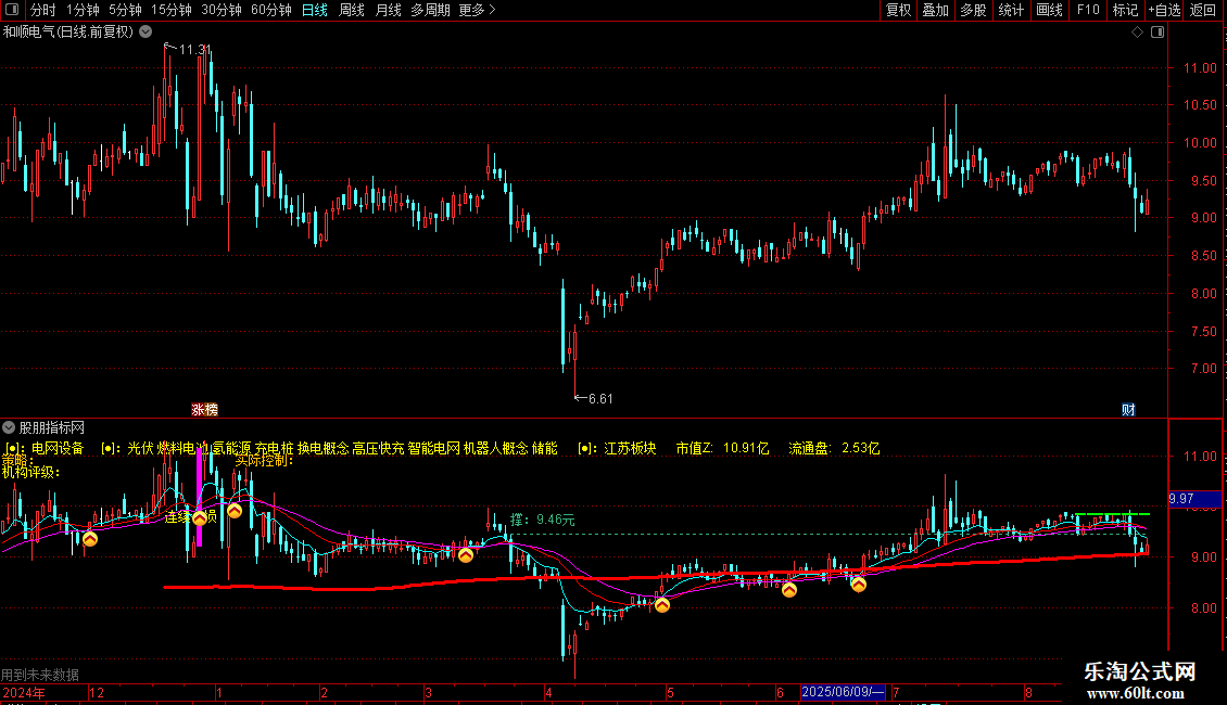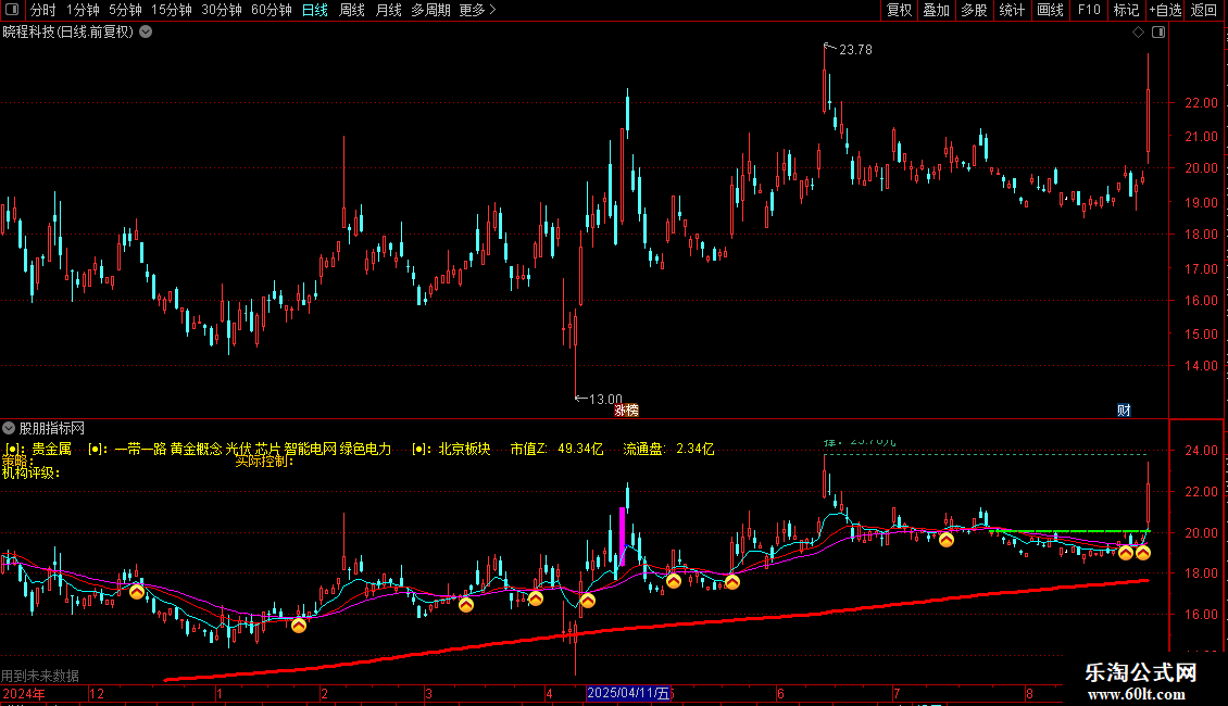 1. 信息面板:在K线图固定位置显示股票所属行业、概念、地域板块、流通市值、流通盘、机构评级、策略标签及实际控制人信息。