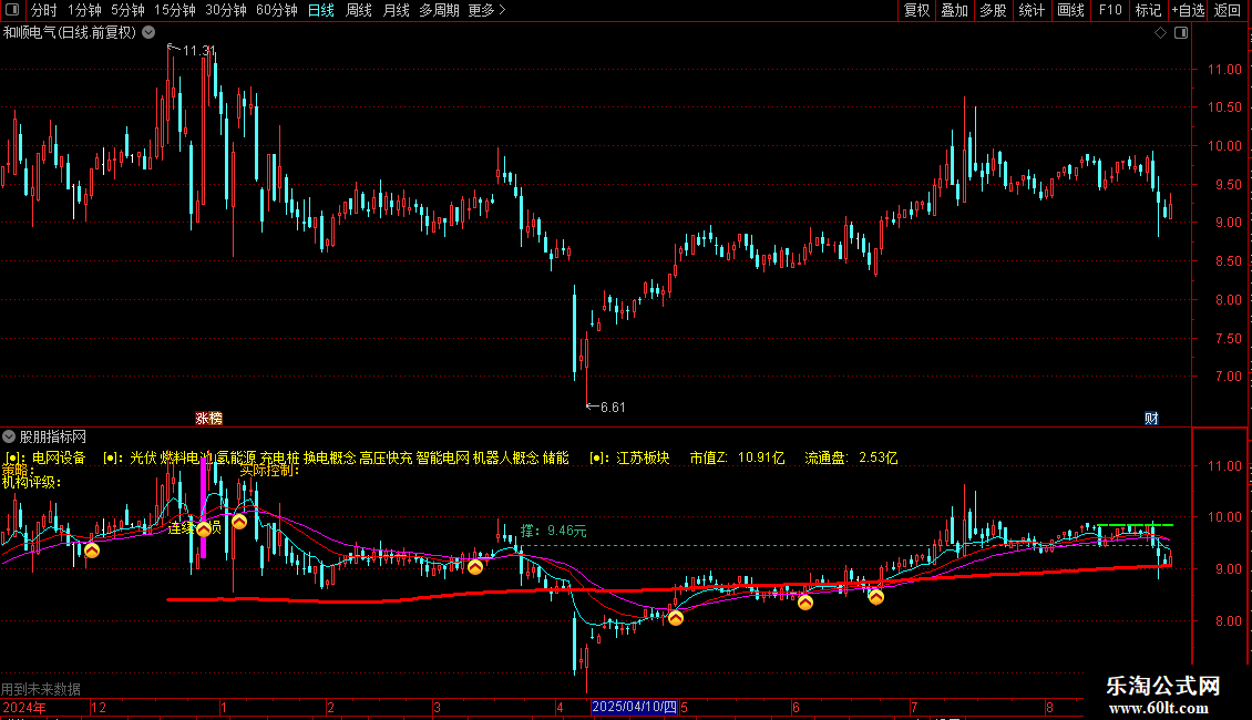 换手率Z:=V*10000/FINANCE(46),COLORCYAN,LINETHICK1;