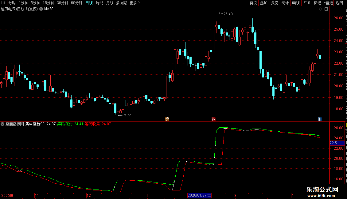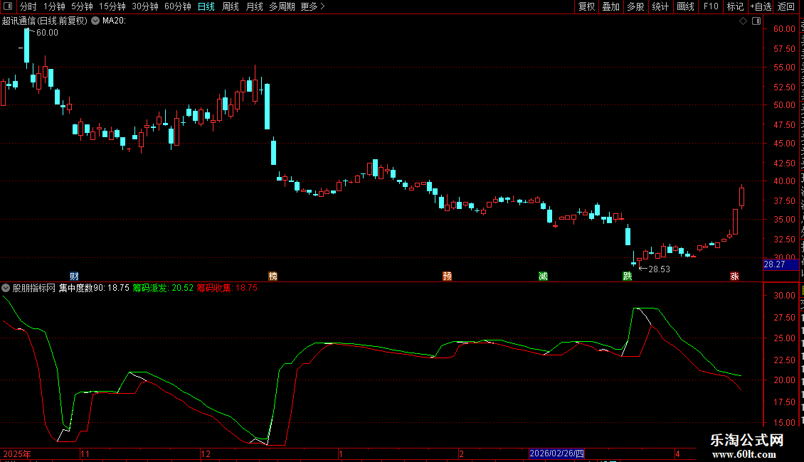 输出筹码派发:4日内集中度数90的最高值,画绿色