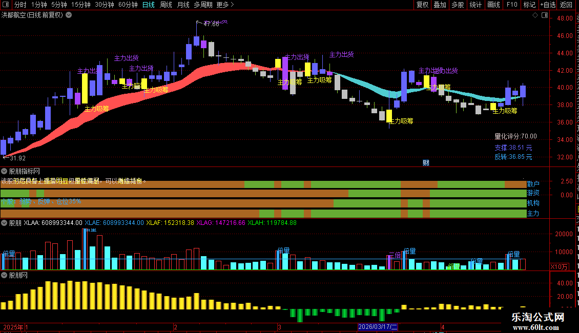 给出操作建议:综合个股与大盘的趋势、量能状况,直接在图上显示文字提示,如“强势、上涨”或“弱势、整理”,并给出建议的仓位比例。