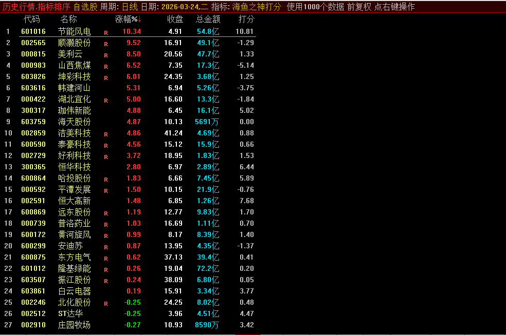 通达信【海鱼之神】副图/选股直观把今买明卖当前行情中的王者尾盘源码