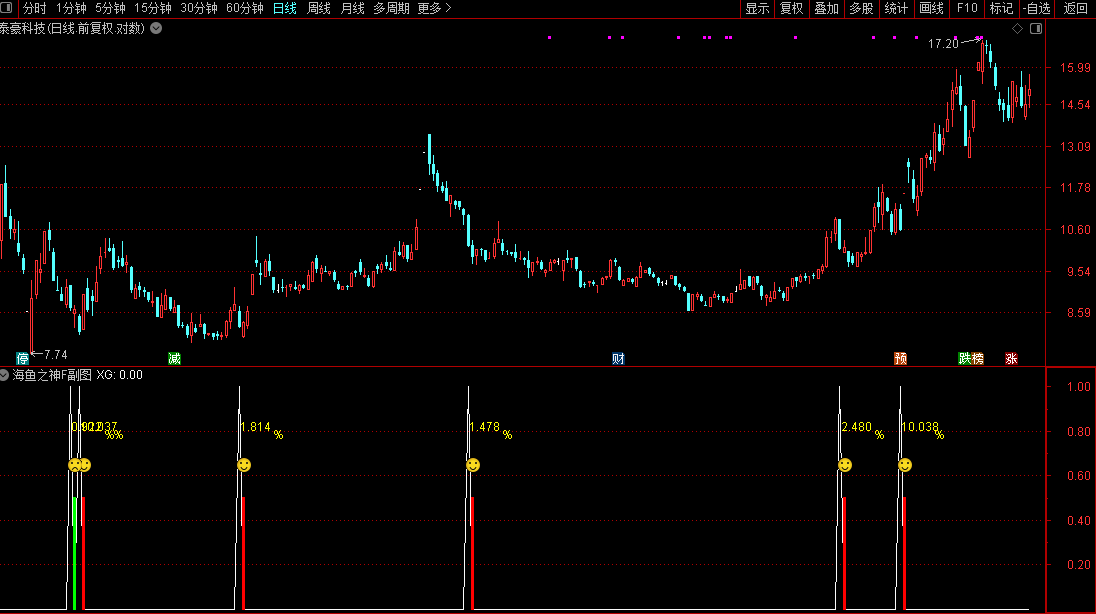 尾盘强势登场,堪称当前行情下的王者尾盘指标。今买明卖,短线操作,盘尾买入,次日冲高卖出,胜率极高。可进行回测,不漂移且无未来函数。此指标涵盖选股、副图及打分功能,出票数量较多,每日只需选取排序第一者进行操作即可。
