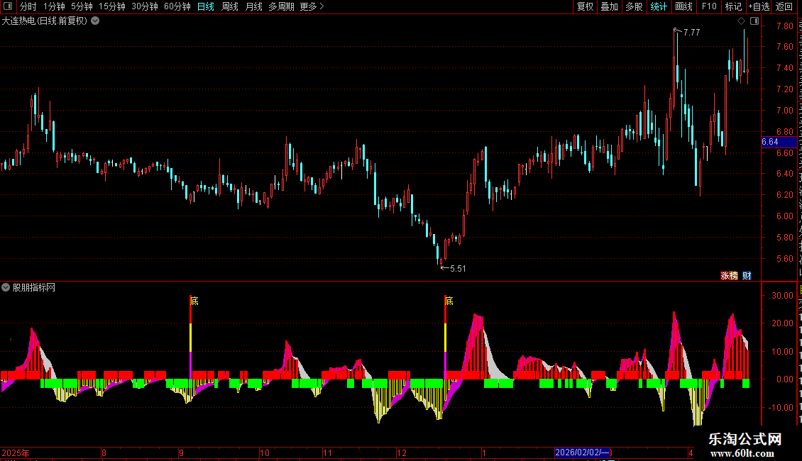 1. 通达信底部乖离指标,融合价格趋势、成交量趋势与EMA指标,精准筛选底部乖离度高的个股信号,乖离度越高,个股底部确定性越强。该指标可作为副图使用,同时搭配红绿柱辅助判断个股强弱,直观呈现多空力量变化,助力投资者精准识别底部区域,降低抄底风险。
