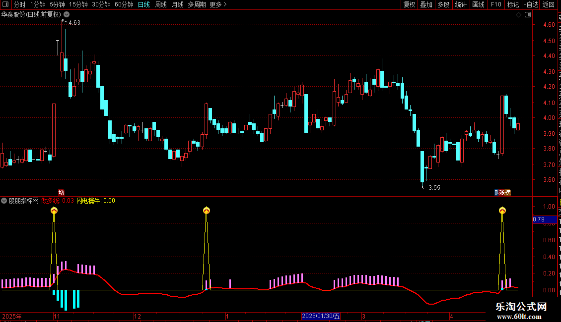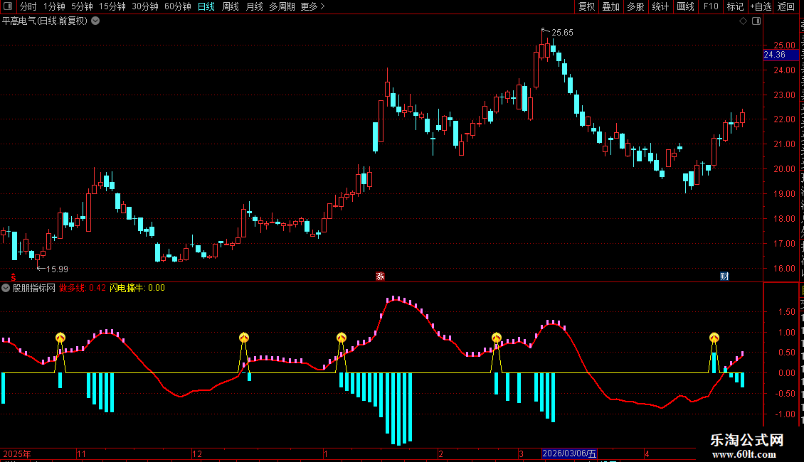 指标通过融合价格、成交量与成本,综合判断个股的做多动能与主力强度。当“做多线”由负转正并持续上行,且“主力强度”柱状线同步放大时,表明多方力量占据主导,是潜在的介入时机。当出现“闪电擒牛”信号时,意味着股价短期动能强劲,可能迎来快速拉升,可视为短线追涨的参考。操作上,宜在“做多线”金叉向上时关注,结合“主力强度”确认,并在出现“闪电擒牛”时把握加速机会。