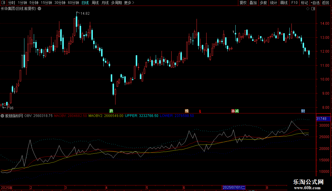 1. OBV能量潮:基于成交量与价格关系判断资金流向,附带15/30日均线及布林带上下轨。