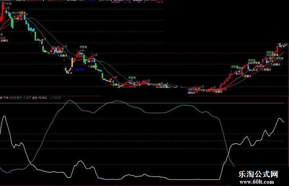 DRAWTEXT(CROSS(主力,散户) AND 主力>50,主力,'G');