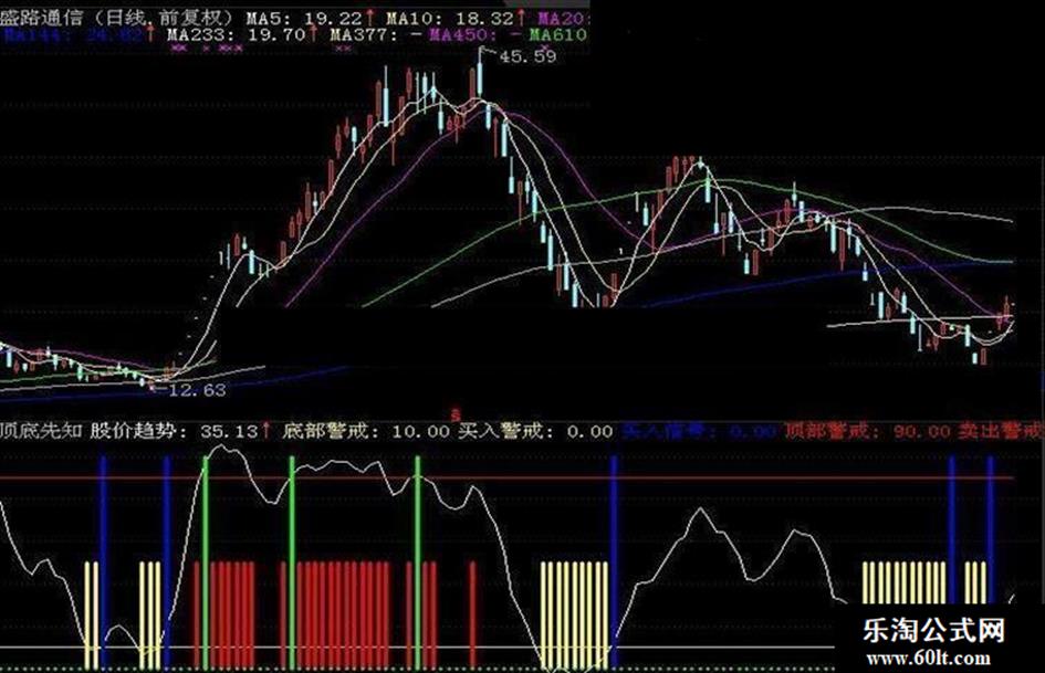 指标出现黄色柱为预警提示,蓝色为底部买入提示,绿色为逃顶提示。