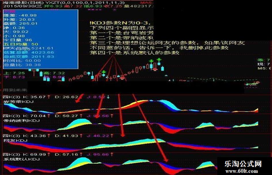 此指标原名三K,刚才在论坛上看到一网友的KDJ参数适合做波段,所以也加在里面了,如果该网友有意见,请告诉我,我立马删掉一组。KDJ的使用就不用说明了吧。我只是偷懒,把不同参数的KDJ放一个指标里,这样方便记忆,只要调节一下就不用换名称了。这贴只能叫分享思路,不是原创,是把他人的指标组合一下。
