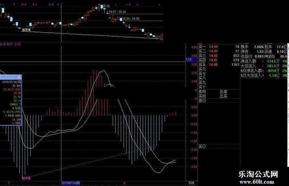 DRAWTEXT(CROSS(EXT!=DRAWNULL,0.5),MACD,'底背离'),COLORMAGENTA;