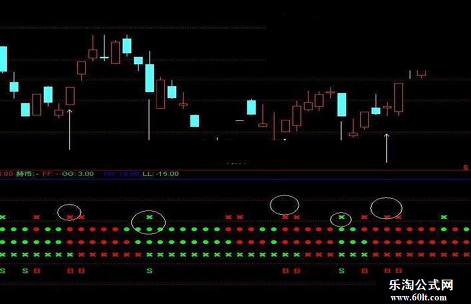 持币:IF(EE<=REF(EE,1),-3,DRAWNULL),CROSSDOT,LINETHICK3,COLORGREEN;
