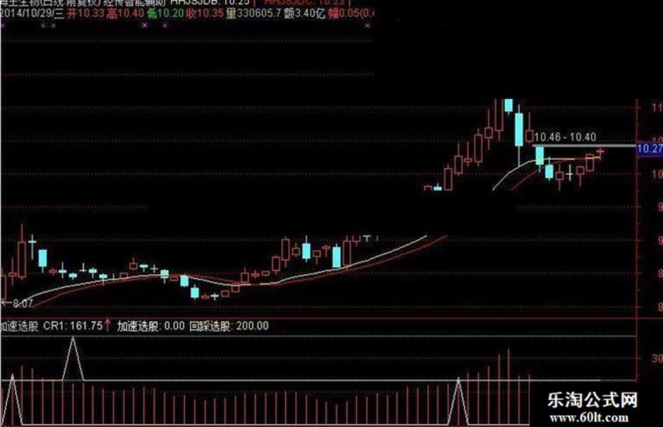 加速选股:IF(EVERY(EMA(C,12)>EMA(C,50),13) AND REF(EVERY(CR1<200,20),1) AND CROSS(CR1,200),CR1,0);