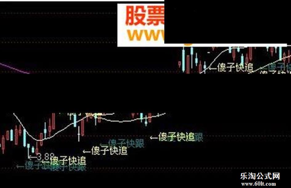 傻子快追:DRAWTEXT(VAR2>90,LOW*0.97,'←傻子快追'),COLORYELLOW;