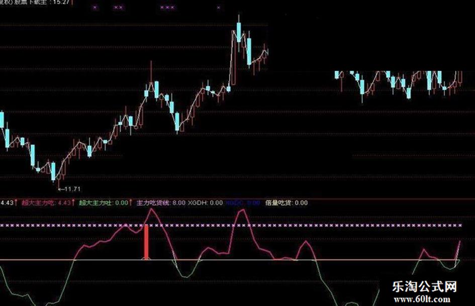 超大主力吐: IF(V4<=0,V4,0),COLOR66FF00,LINETHICK1;