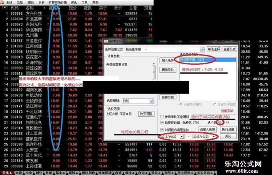 下面我分享下我在集合竞价时的选股公式,选股最好在9:25-9:30选,因为9:20-9:25时间很特殊,它指明了主力动向,不多说了