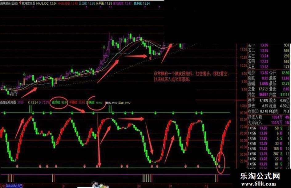 STICKLINE((趋势线 >230 ),100,90,0.3,1),LINETHICK6,COLORGREEN;