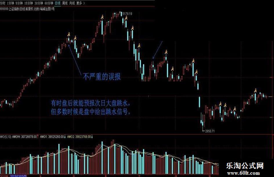 有时在大盘跳水前一天,信号就会出现,也就是收盘后就可以见到信号,