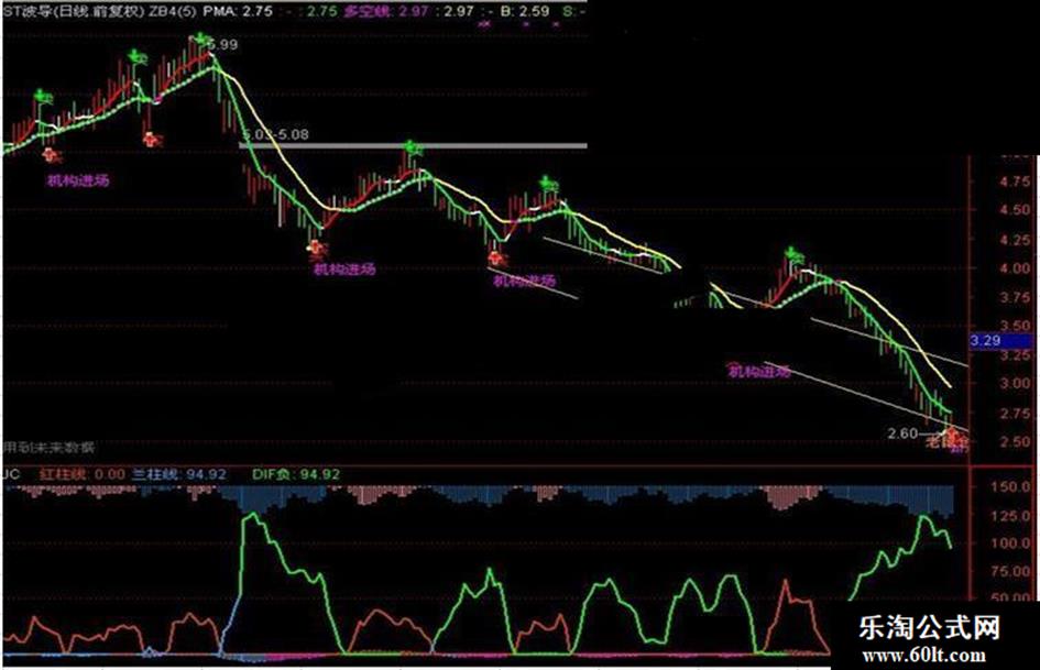 长趋势线:(SUM(中趋势线,6)) / 6,LINETHICK2,COLORGREEN;}