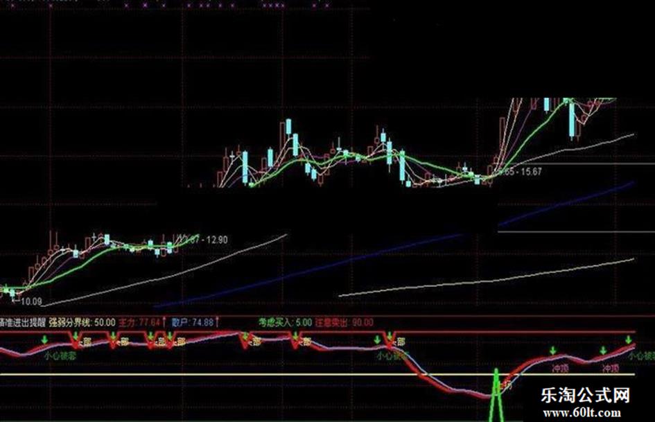 卖出脉冲:IF(CROSS(散户,主力) AND 散户>75,75,90),LINETHICK4,COLORRED;