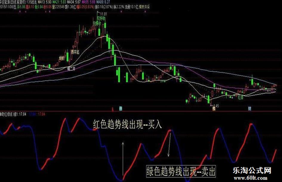 用法很简单: 红色趋势线出现的时候买入,绿色趋势线出现的时候卖出!