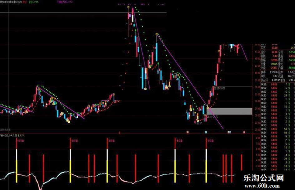 新疆豆豆同学向俺要个股的监控,刚好有一个就拿出来分享了。个股变动很大的,三天两头变脸的,所以信号是比较多的,特别是红色柱状的信号。说一下思路比较重要,这个指标主要出发点是个股与大盘的协同性,处理这个问题最好的办法就是贝塔系数,大家百度就知道的,如果大盘涨1个,个股可以涨2个点,那么它就等于2,大概是这样的意思的,总之这时候它开始与大盘走势不一样了,有问题,很可能变盘,当然这不是绝对的,有的信号后没有变化的也是有的,我不敢说完美,当作参考吧,一般来说,出信号那时候有鬼。出信号心里也不用慌张的,看看是否真的如此。以免判断失误造成损失。说实话,这个大题目很难很难搞。