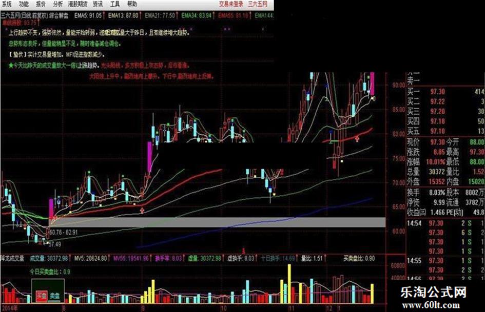 DRAWTEXT_FIX(情况10=1,0.02,0,0,'上行趋势不变,强势依然,量能开始转弱,注意风险。'),COLOR00FFFF;