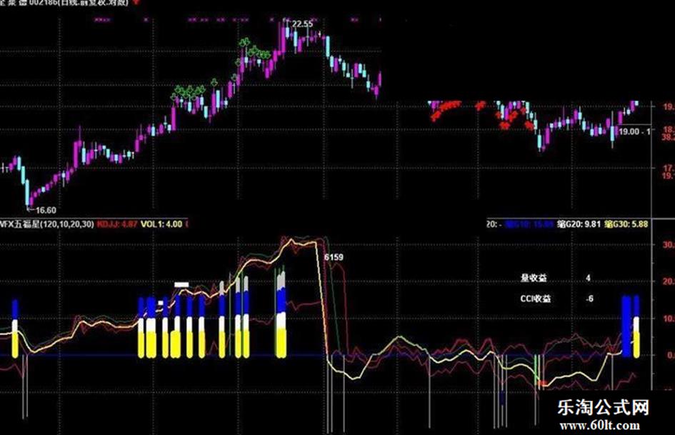 DRAWTEXT_FIX(CURRBARSCOUNT=1 AND C>0.51,0.80,0.3,0,'CCI收益');