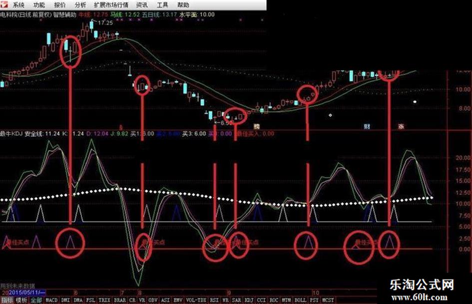 买3: IF(CROSS(K,D) AND K>安全线,9.8,6);
