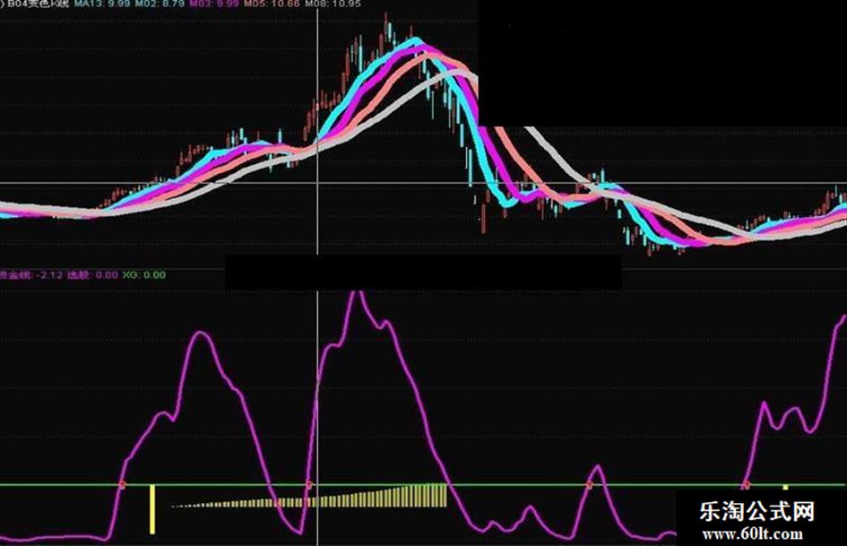 走势线:=EMA(控盘量A-换手率%A,5)*1.5,LINETHICK1,COLORLIMAGENTA;