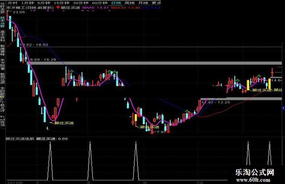 DRAWTEXT(FILTER(买=1,5),LOW-0.05,'↖跟庄买进'),COLORYELLOW;