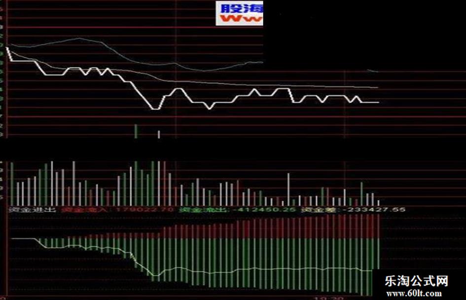 资金流入:SUM(IF(C>REF(C,1),C*V,0),FROMOPEN),STICK,COLORRED; 资金流出:-SUM(IF(C<REF(C,1),C*V,0),FROMOPEN),STICK,COLOR00FF00; 资金差:资金流入+资金流出,COLORYELLOW;