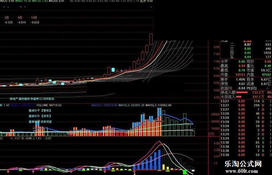 买:=IF(O=C AND (C-REF(C,1))/REF(C,1)*100>9.8,AMOUNT,AMOUNT/((H-L)*2-ABS(O-C))*(C-L));