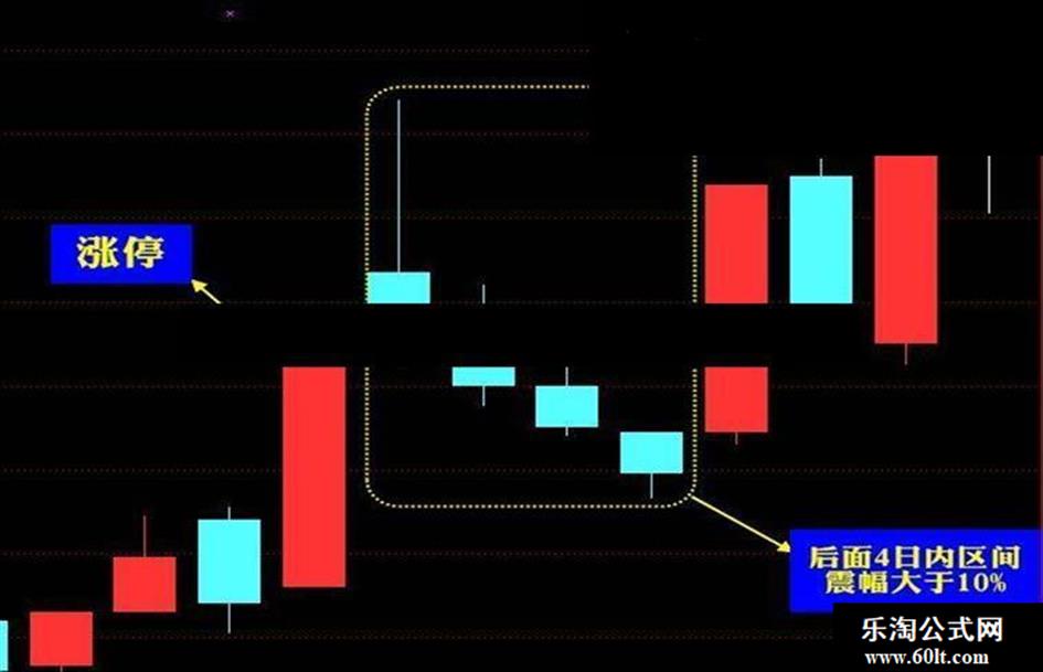 ZT:=C>REF(C,1)*1.095 AND C=H; ZF:=(HHV(H,4)/LLV(L,4))/LLV(L,4)*100>10; TJ:=DOWNNDAY(L,2); XG:REF(ZT,4) AND ZF AND TJ;