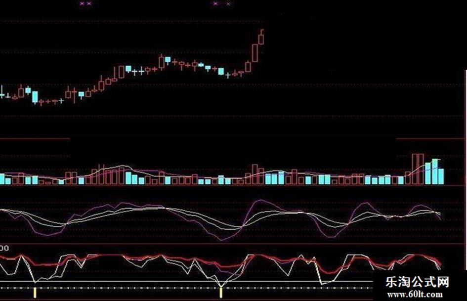 白穿红线买:=IF(((CROSS(短期,长期)AND 长期<20)),-30,0),STICK,COLOR00FF00,LINETHICK3;
