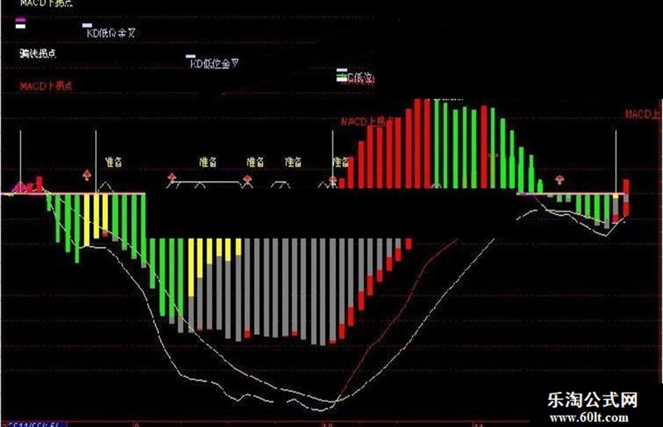 DRAWTEXT(FILTER(CROSS(DIFFF,DEAF) AND DEAF<0,6),L-0.02,'MACD低位金叉'),COLORRED;