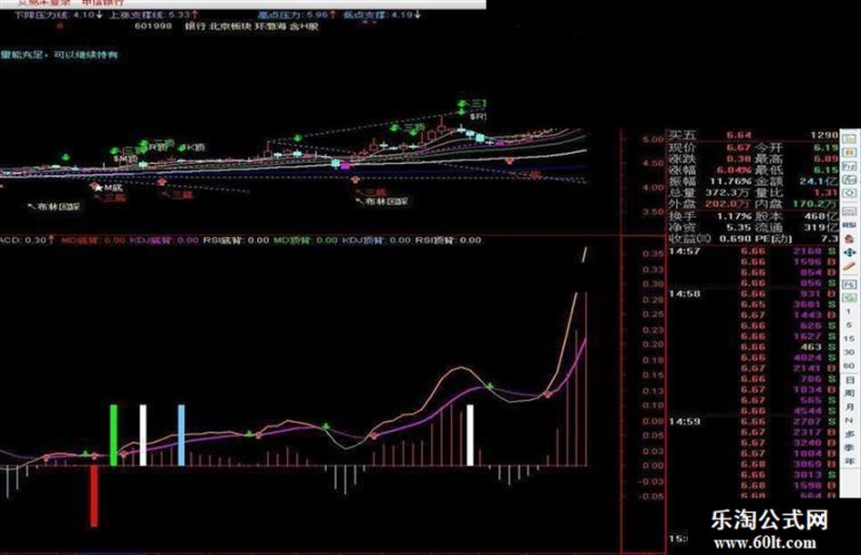 KDJ顶背:IF(D2>0,0.1,0),COLORFFCC66,POINTDOT;