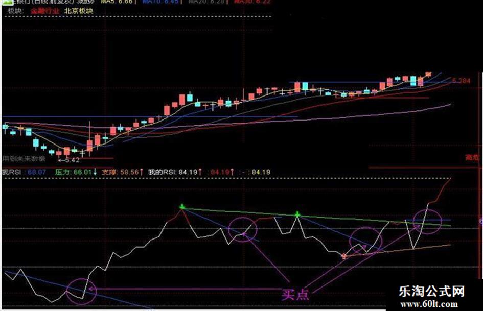 具体看RSI突破压力线就是买点,特别在一波下跌之后出现在低位突破的效果明显,指标有未来函数因为是画线功能,不喜欢的请绕道,如有雷同纯数巧合,不当之处请前辈们斧正优化。