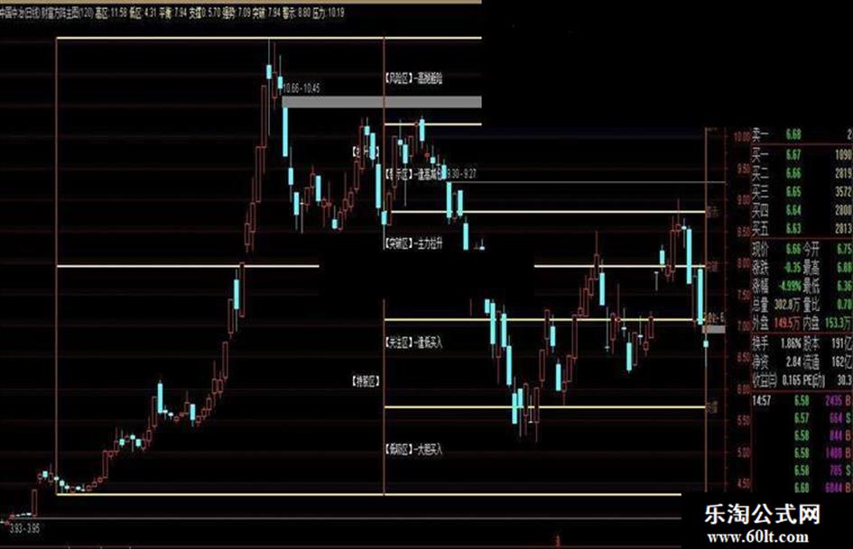 DRAWTEXT(CURRBARSCOUNT=N/4+30,GD-KJ*0.45,'【突破区】--主力拉升'),COLORWHITE;