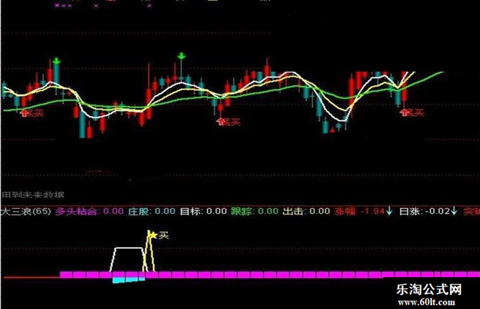 多头粘合:IF(多头 AND 粘合,1,0),COLORFF00FF,POINTDOT,NODRAW;